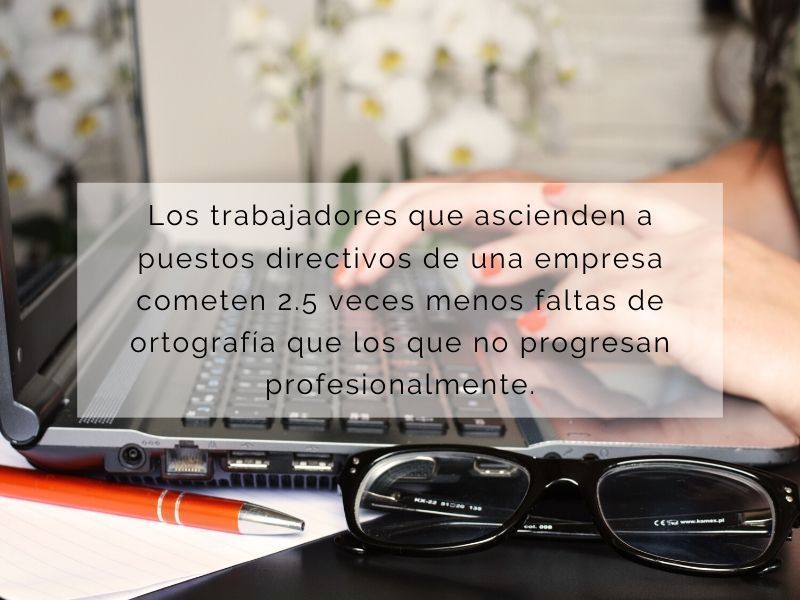 Por otro lado, a nivel personal, las faltas ortográficas presuponen una dificultad extra para avanzar profesionalmente. Un estudio realizado por Grammarly demostró que las personas que no consiguieron acceder a puestos directivos tuvieron 2.5 veces más faltas ortográficas que los que sí ascendieron.